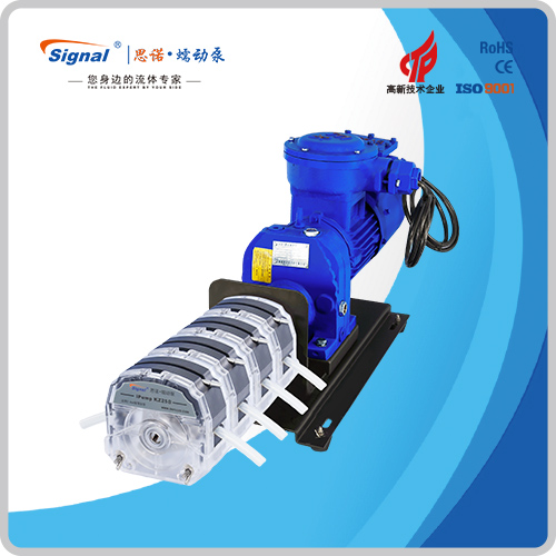 ? ? ?1.流量范圍:115.0-6061mL/min ? ? ?2.免維護交流防爆減速電機驅動,變頻器調節轉速 ? ? ?3.電機扭矩大,可級聯雙泵頭 ? ? ?4.防爆等級DIIBT4,適合易燃易爆環境使用