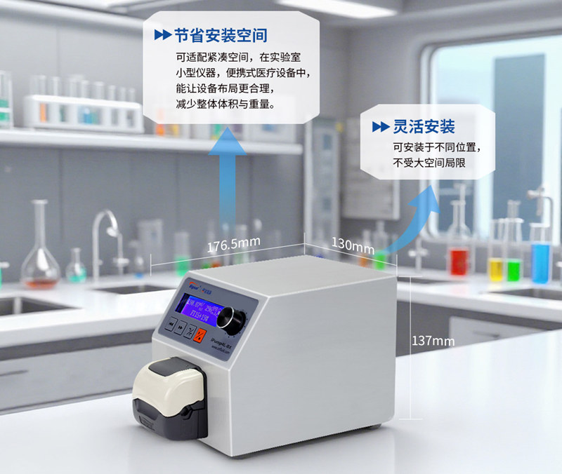 迷你玲瓏蠕動泵外型小巧,可適配緊湊空間,在實(shí)驗(yàn)室小型儀器、便攜式醫(yī)療設(shè)備中,能讓設(shè)備布局更合理,減少整體體積與重量。